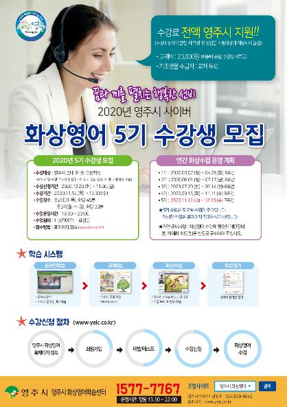 영주시는 집에서 PC를 통해 원어민과 수업을 진행하는 ‘영주시 사이버 화상영어’ 5기 수강생을 오는 10월 20일부터 11월 6일까지 모집한다.