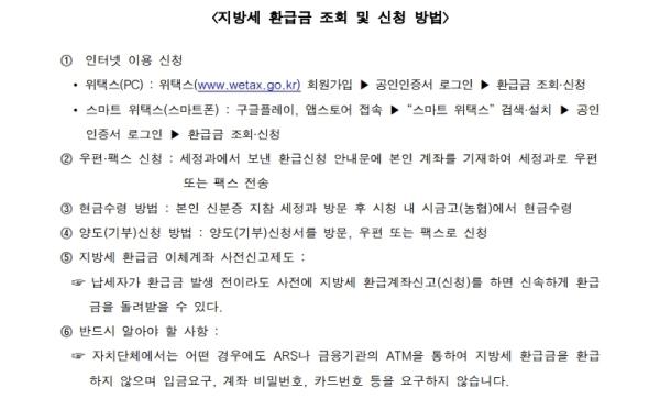 우종선 세정과장은 “지방세 미수령 환급금 찾아주기를 지속적으로 추진해 납세자 재산권 보호는 물론 경제적으로 어려움을 겪고 있는 분들께 조금이나마 도움이 되고자 한다”고 밝혔다.