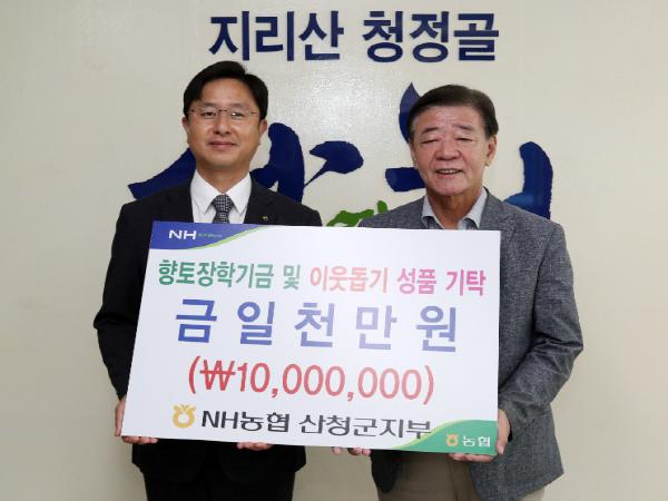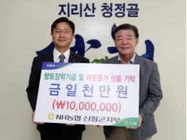 NH농협은행 산청군지부가 13일 산청군을 찾아 향토장학금 500만원과 500만원 상당의 이웃돕기 성품(쌀) 등 모두 1000만원을 기탁했다.