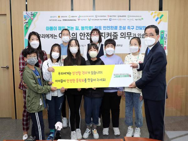 아이들이 바라는 학교 가는 길, 안전하고 행복한 통학로 조성을 요구하는 아동의 목소리와 통학로 개선 촉구서 전달, 학부모 지지발언, 자유토론 순으로 진행됐다.