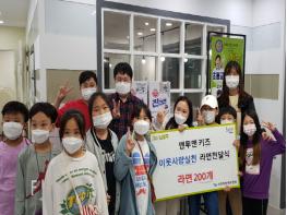 맨투맨 키즈는 유아, 초등생을 대상으로 하는 영어수학학원으로, 학생들이 과제를 성실히 해올 때마다 2개씩 적립한 라면 200개를 모아 기부하게 되었다.