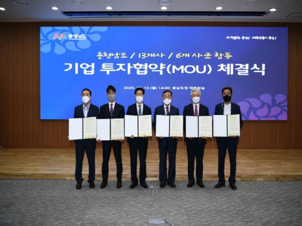 예산군은 지난 12일 충남도청 대회의실에서 충남도와 6개 시·군, 13개 기업이 참여한 가운데 관내 산업단지에 투자를 결정한 4개 기업과 합동 투자협약(MOU)을 체결했다.