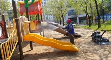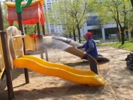 구는 또 공원 내 편의 시설물과 놀이시설에 대해서도 지속적으로 소독하고, 매월 어린이 놀이시설에 대한 안전점검을 실시해 파손된 부분 등을 신속하게 보수하고 교체하고 있다.
