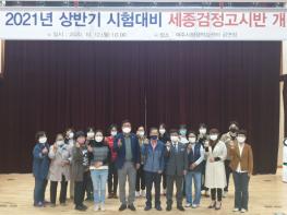 여주시 평생교육과에서는 학력취득을 통한 시민의 삶의 질을 향상하고, 평생학습도시 활성화를 위해 지난 12일 「2021년 상반기 시험대비 세종검정고시반」 개강식을 가졌다. 특히 이번 개강식은 코로나19가 가져온 어려운 상황 가운데 진행하게 되어 참석자 모두에게 더욱 뜻깊은 날이 됐다.