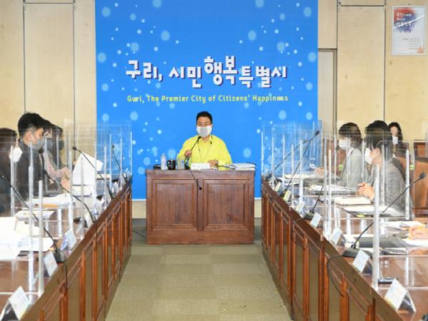 구리는 12일 시청 3층 상황실에서 안승남 시장 주재로 공약사업 담당실무자와 ‘2020년 제3/4분기 공약사업 추진상황 보고회’를 가졌다고 밝혔다.