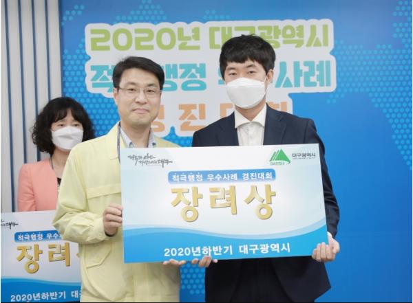 대구 수성구는 지난 7일에 열린 ‘2020년 하반기 대구시 적극행정 경진대회’에서 장려상과 협업응원상을 수상했다.