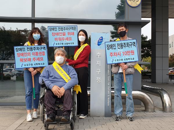 용인시는 수지구는 14일 청사 앞에서 장애인주차구역 준수 캠페인을 했다고 밝혔다.
