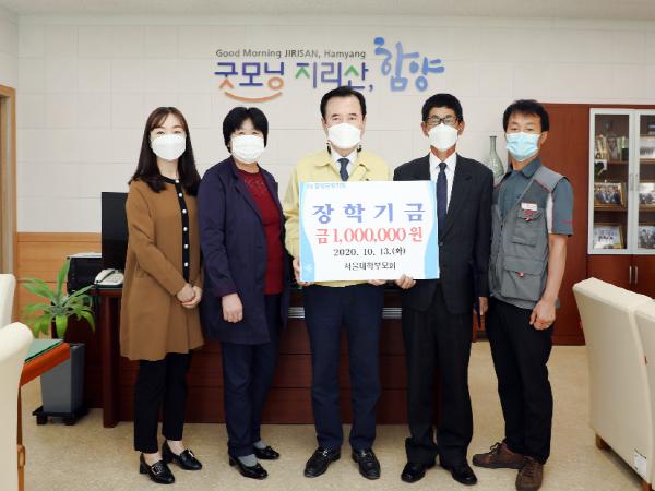 울대학부모회에서 13일 오전 함양군 지역인재양성을 위한 마음을 담아 (사)함양군장학회에 장학금을 기탁하였다.