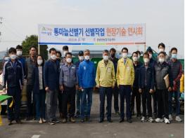 창녕군은 지난 12일 군 마늘재배 농업인을 대상으로 농기계임대사업소에서 통마늘 선별기 선별작업 성능 연시회를 개최했다고 밝혔다.