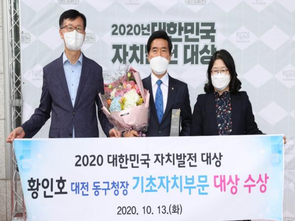 황인호 대전 동구청장이 13일 서울 백범김구기념관에서 열린 ‘2020 대한민국 자치발전 대상’ 시상식에서 기초단체 부문 대상을 수상했다.