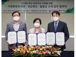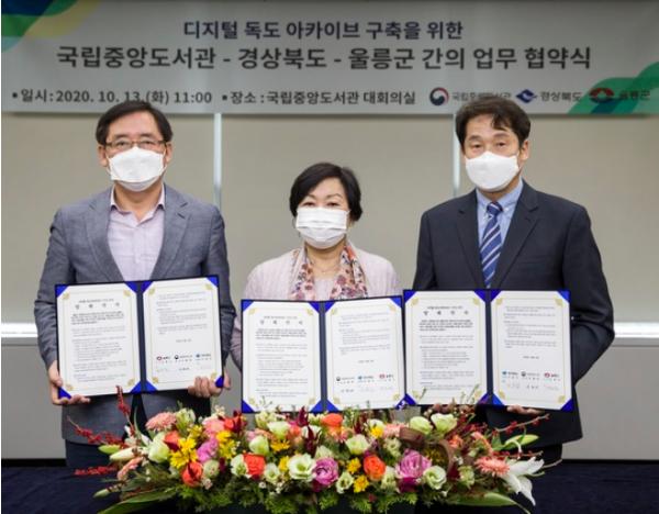 경상북도, 국립중앙도서관, 울릉군은 13일 국립중앙도서관 대회의실에서 디지털 독도아카이브 구축을 위한 업무협약(MOU)을 체결했다.