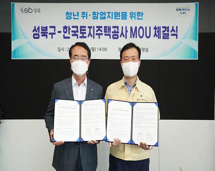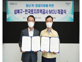 성북구가 한국토지주택공사(LH)와 청년 취·창업 역량강화 및 커뮤니티 활성화를 위해 지난 12일 업무협약을 체결했다.
