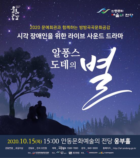 시각 장애인을 위한 라이브 사운드 드라마 ? ‘알퐁스 도데의 별’공연이 오는 15일 15시 안동문화예술의전당 웅부홀에서 진행된다.