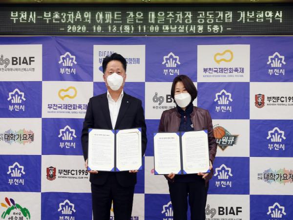 부천시는 지난 13일 시청 만남실에서 부촌3차아파트외 가로주택정비조합과 아파트 같은 마을주차장 공동건립 기본협약을 체결했다.