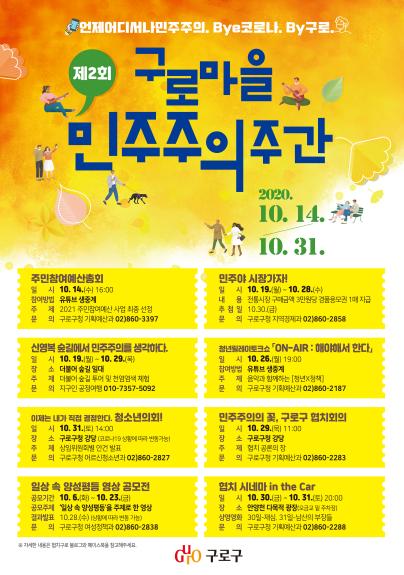 구로구가 14일부터 30일까지 제2회 민주주의 축제 ‘공감 구로(GURO)’를 개최한다. 코로나19 예방을 위해 온라인 행사 위주로 진행한다.