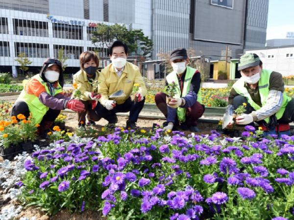 또한 역전근린공원 플라워 가든에도 무늬억새, 소국, 아스타 등 10여 종의 다양한 가을철 초화류 3만3천 본을 식재하여 시민들에게 고즈넉한 가을 분위기와 휴식 공간을 제공하고 있다.