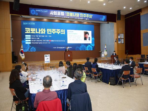 ‘포스트코로나 시대 패러다임 전환과 한국 민주주의’로 김누리 교수의 기조강연을 시작으로 주제발표, 분야별 토론, 종합토론(공유의 시간)의 순으로 진행됐다. 포럼은 코로나 19의 확산 방지를 위하여 기조강연과 토론자들만 참여하여 진행됐으며, 동시에 유튜브 채널(부마민주항쟁기념재단) 생중계도 병행됐다.