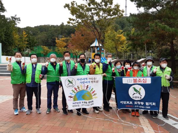도량동에서는 2020. 10. 14.(수) 오전 10:30 소롯골공원 인근 등산로에서 자연보호도량동협의회(회장 김영태) 회원 20여명이 참여한 가운데 자연보호캠페인과 자연정화활동을 실시했다.