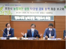 포천시는 14일 포천시 농업인 단체장 및 농협, 재단 관련 외부 및 시 관계자 등 30여명이 참석한 가운데 포천시 농업재단 설립 타당성 검토 용역 최종보고회를 개최했다.