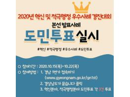 경상남도와 시·군 및 지방공사·공단이 함께하는 <2020년 혁신 및 적극행정 우수사례 도 통합 경진대회>가 오는 10월 23일에 열린다.