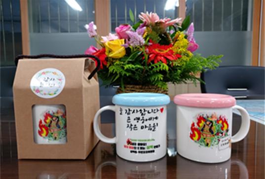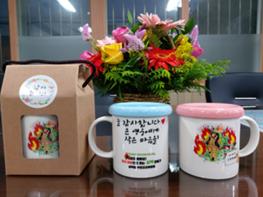 이번 감사 선물은 삼덕초등학교 학생(5~6학년)들이 소방관분들께 보내는 감사의 메시지를 그림으로 표현하고 그중에서 최우수 작품을 선정해 머그컵에 디자인한 것으로 학생들이 평소 소방관분들을 생각하는 고마운 마음이 고스란히 담겨져 있다.