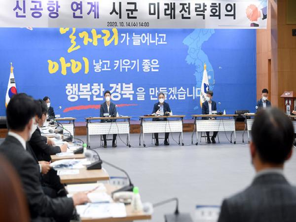 신공항 연계 시·군 미래전략회의는 새로운 경제거점이자 미래성장 동 력인 신공항 건설의 파급효과를 극대화하기 위한 산업, 경제, 관광 등 관련분야 전략을 새롭게 발굴하고 추진하기 위한 도와 시·군의 협력 창구다.