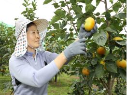 태추단감의 수형 안정화와 작업능률 향상을 위해 1,500만원을 투입해 우산식 지주 지원사업과 규격별 선별로 소비자 만족도 향상을 위한 선별기 지원사업을 추진하고 있다.