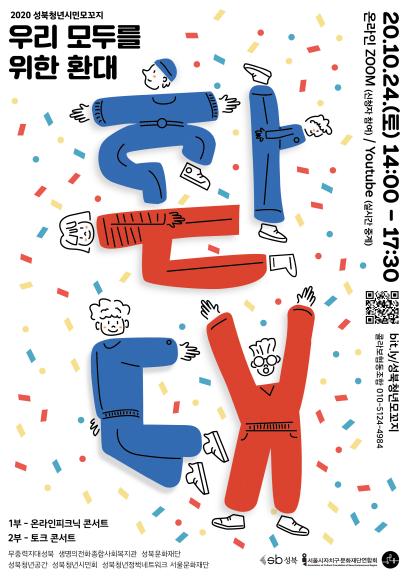 성북구 관계자는 “2020 성북청년시민모꼬지 <우리 모두를 위한 환대>에 지역 청년들의 많은 관심과 참여를 바라며, 이 행사를 통해 거리두기로 위축된 소통의 장이 다시 열리고 청년들에게 위로와 응원의 말을 건넬 수 있길 기대한다.”고 전했다.