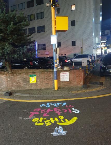 구는 유동인구가 많고 야간에 쓰레기 무단투기가 잦은 85개소 중 15개소를 선정하여 양심에 호소, 감성을 자극하는 무단투기 방지 문구 4종류의 로고젝터를 순차적으로 바닥에 송출한다. 점등타이머가 내장되어 있어 일몰 후 보안등이 점등시간에 맞춰 자동으로 커지고 해가 뜨면 꺼지게 된다.