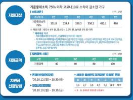 가구별 지원금은 1인 가구 40만 원, 2인 가구 60만 원, 3인 가구 80만 원, 4인 이상 가구 100만 원이며 지원금은 신청한 계좌에 현금으로 1회 지급된다.