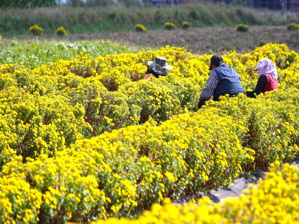 산청지역자활센터 약초사업단은 약초재배단지 7000여㎡에 감국을 심었다.