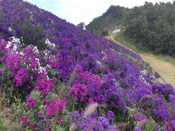 댐 사면 특성상 토심이 얇고 법면녹화 작업이 되어 있어 생육조건이 불리한 상황에서도 기존 하층식생(억새류)과 더불어 지속적인 초화류 생육 집중관리로 10월 중순 이후부터 금방울 꽃이 만개하여 아름다운 경관을 연출할 예정이다.