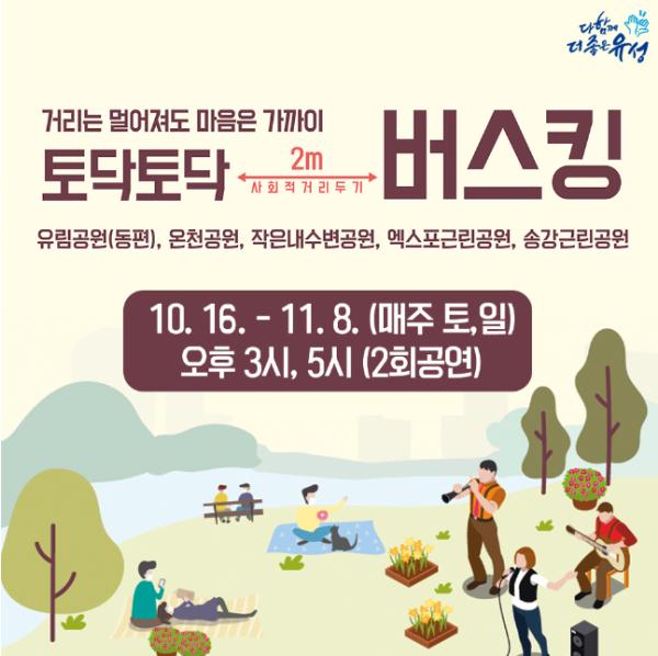대전 유성구는 16일부터 11월 8일까지 유성구 전역에서 코로나19로 지친 구민들을 위해 ‘마음 토닥토닥, 2m 버스킹’ 공연을 개최한다고 15일 밝혔다.