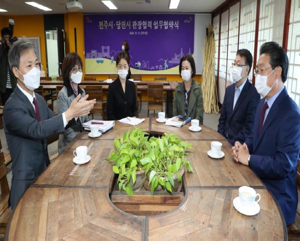 시는 15일 전주시청에서 김승수 전주시장과 김홍장 당진시장 등 20여 명이 참석한 가운데 ‘문화관광 활성화를 위한 전주시-당진시 관광협력 업무협약’을 체결했다.
