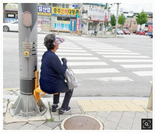 충주시가 노인들의 안전한 도로 횡단을 위해 시내 주요 교차로에 ‘횡단보도 안전의자(일명 장수 의자)’를 설치해 노인들로부터 큰 호응을 얻고 있다고 밝혔다.