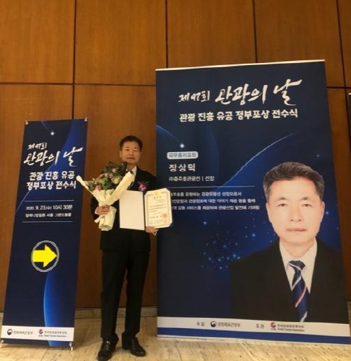 단양군은 ‘제47회 관광의 날’을 기념해 밀레니엄 힐튼 서울 그랜드볼룸에서 진행된 관광진흥유공 정부포상 전수식에서 단양 제비호 선장 장상덕 씨(56)가 국무총리 표창을 수상했다고 지난 14일 밝혔다.