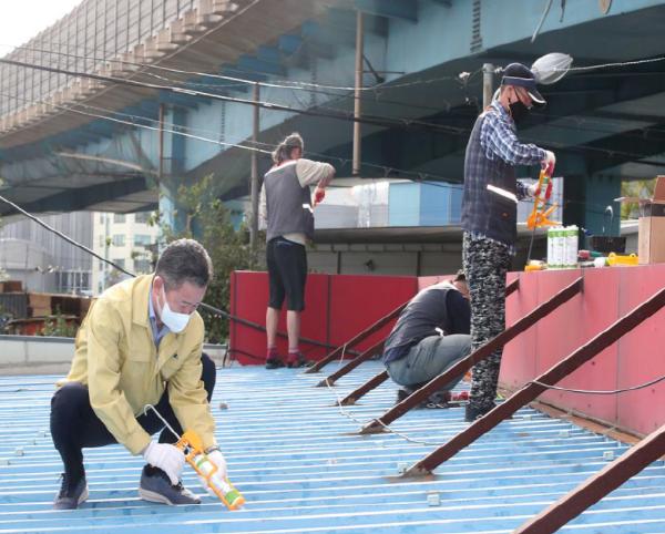 인천시 동구는 지난 14일 동구 지역자활센터와 함께 만석고가교 부근에 위치한 만석동 굴까기 공동작업장 보수 작업을 실시했다고 밝혔다.