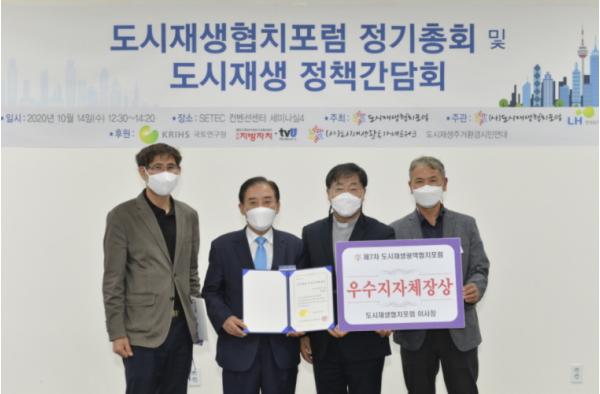 포천시는 지난 14일 서울 SETEC 컨벤션센터에서 열린 제7차 도시재생 광역협치포럼에서 2020년 도시재생뉴딜 공로로 ‘도시재생 우수지자체장상’을 수상했다고 밝혔다.