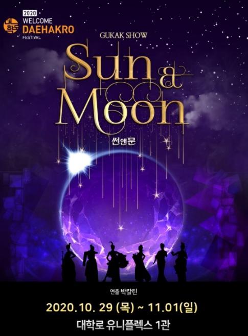 박칼린 연출의 국악쇼 <썬앤문>이 한국관광공사에서 주최 주관하는 ‘2020 웰컴대학로’ 대표 프로그램인 ‘웰컴시어터’ 참가작으로 선정돼 29일 대학로 유니플렉스 1관에서 막을 올린다.