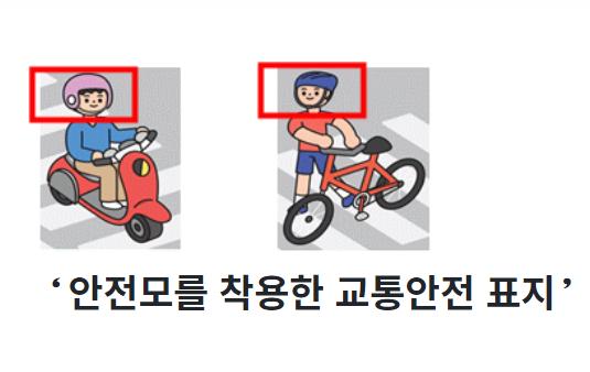 ▷ 도로교통법의 이륜차, 자전거 안전표지를 안전모(헬멧)를 쓴 표지로 변경