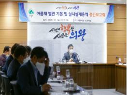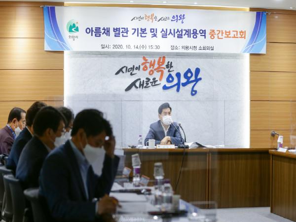 의왕시는 14일 시청 소회의실에서 김상돈 시장과 송광의 시의원, 관계공무원 및 전문가 등 20여명이 참석한 가운데 아름채 노인복지관 별관 건립을 위한 실시설계용역 중간보고회를 개최했다.