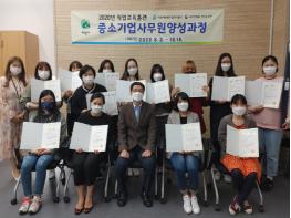 ‘중소기업경리사무원 양성과정’은 사무직종에 취업을 희망하는 여성을 대상으로 현장에서 즉시 근무 가능한 인력을 양성하는 것을 목표로 개설된 직업교육훈련으로 지난 8월 3일 하이미디어컴퓨터학원 안양캠퍼스에서 개강하여 이날 16명이 200시간의 교육을 마치고 수료식을 가졌다.