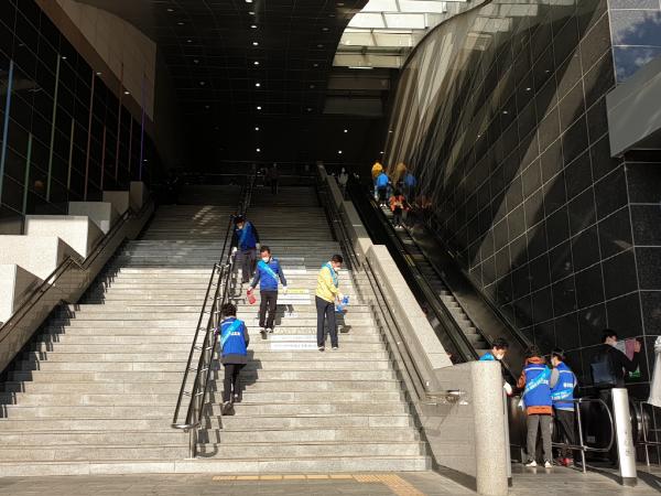 평택시 원평동 통장협의회(회장 황종구)는 지난 14일 주민들이 많이 이용하는 서부역과 버스정류장 등의 다중이용시설 방역소독을 실시했다. 아울러, 이날 지역주민들에게 마스크 착용 등 방역수칙 준수 및 사회적 거리두기에 적극 동참하자는 캠페인도 전개했다.