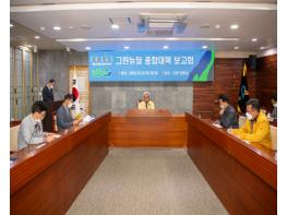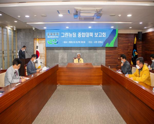 오산시는 15일 시청 상황실에서 곽상욱 시장과 국·과장 등이 참석한 가운데 2020년 그린뉴딜 종합계획 수립을 위한 보고대회를 개최했다.