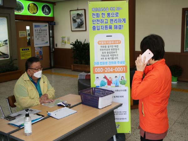 그동안 군에서는 군청 방문객들에게 연락처 등을 방문대장에 작성토록 하였으나 불특정 다수가 사용하는 필기구와 개인정보에 대한 유출 우려 등 문제점을 해결하기 위해 출입자관리시스템을 도입했다.
