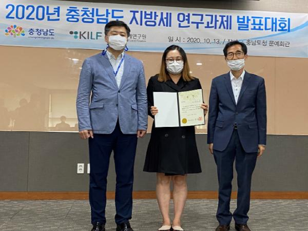 이번 연찬회에서 손소영 주무관은 ‘유해화학물질에 대한 지역자원시설세 과세방안’이라는 주제로 ‘현 유해화학물질 관리 미흡으로 인한 화학사고를 예방하기 위해 재정적 마련을 위한 지역자원시설세 신세원 발굴의 필요성’에 대해 발표해 최우수상을 수상했으며, 오는 11월 행정안전부가 주관하는 지방세발전포럼에 충청남도 대표로 참여하게 될 예정이다.
