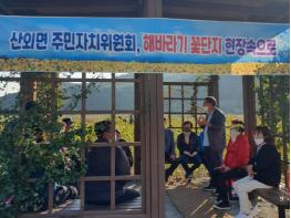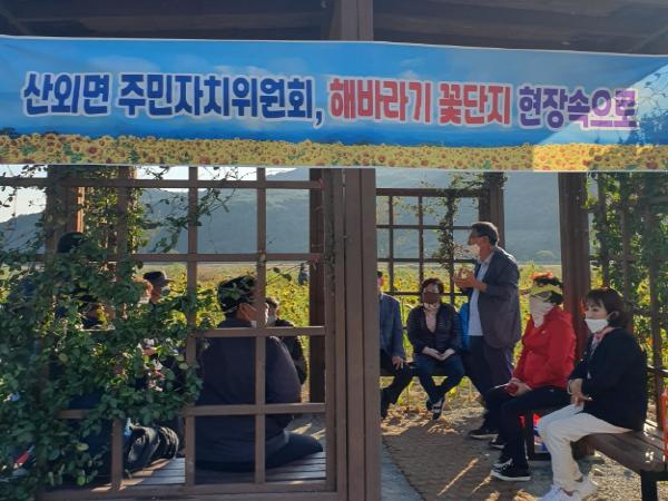 밀양시 산외면은 15일 산외면 남기리 835번지 기회송림과 연계한 힐링 명소인 해바라기 꽃단지에서 산외면주민자치위원회 월례회를 개최했다.
