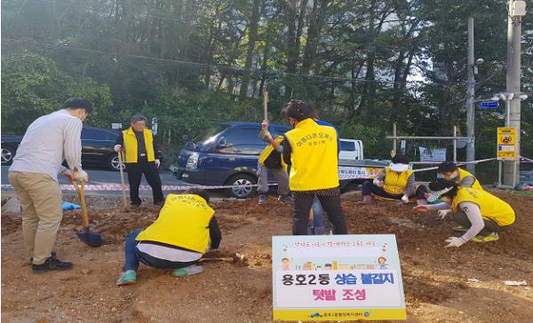용호3구역 주택재개발조합(조합장 우영신)으로부터 포크레인, 덤프트럭 등 장비를 지원 받아 건설폐기물 125톤을 수거 처리하고 무단투기 재발방지를 위해 용호2동 지역사회보장협의체(민간공동위원장 이성호) 주관으로 텃밭을 조성했다. 추후 생산되는 채소 등은 주민과 함께 나누는 사업을 펼치기로 하였다.