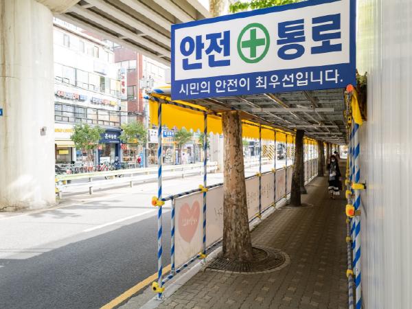 광진구가 건축공사장 주변 보행자의 안전사고와 코로나19 확산을 방지하고자 ‘보행자 안전통로’의 설치 방식 개선에 적극 나섰다.