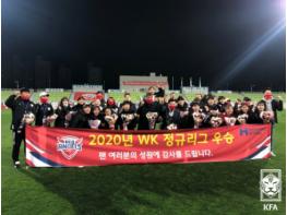 인천현대제철은 15일 인천남동경기장에서 열린 2020 WK리그 21라운드 경기에서 화천KSPO를 2-0으로 이겼다. 18승 1무 2패로 승점 55점을 기록한 인천현대제철은 2위 경주한수원을 승점 1점 차로 따돌리고 1위로 챔피언결정전에 진출했다. 2013년부터 이어진 대기록이다.
